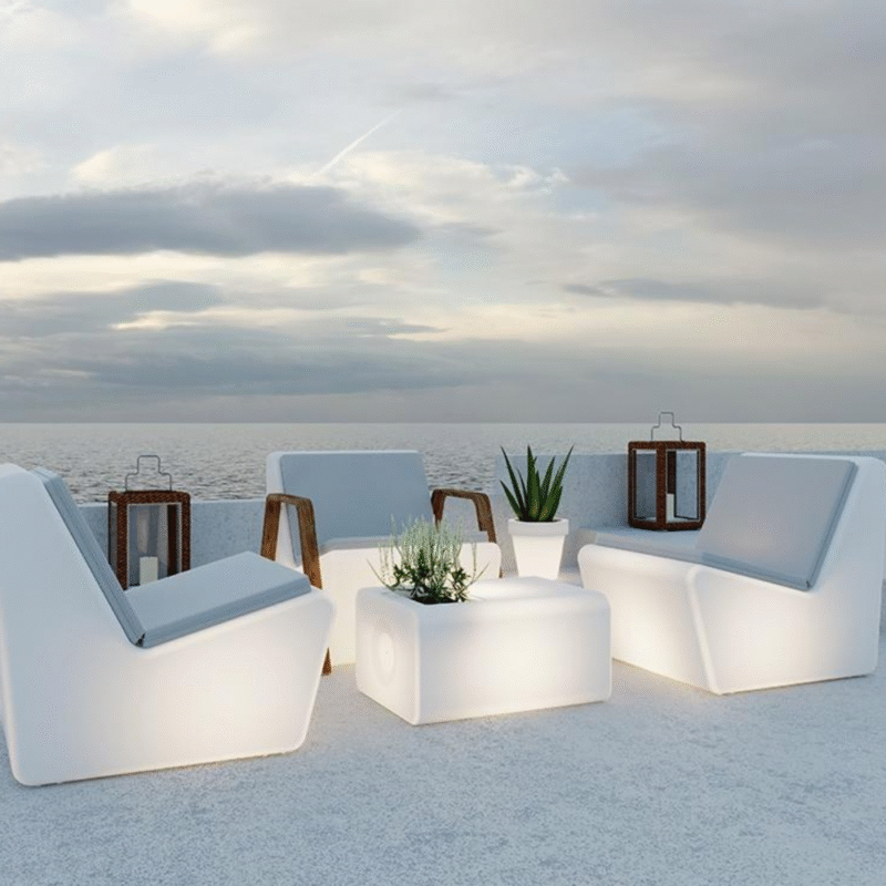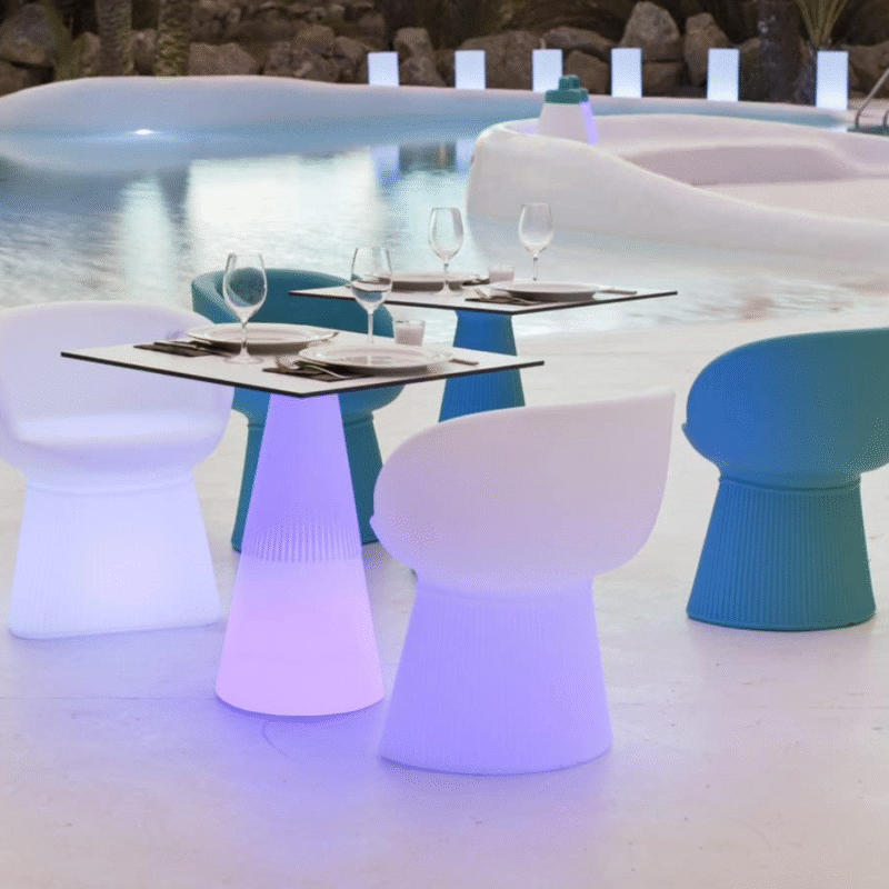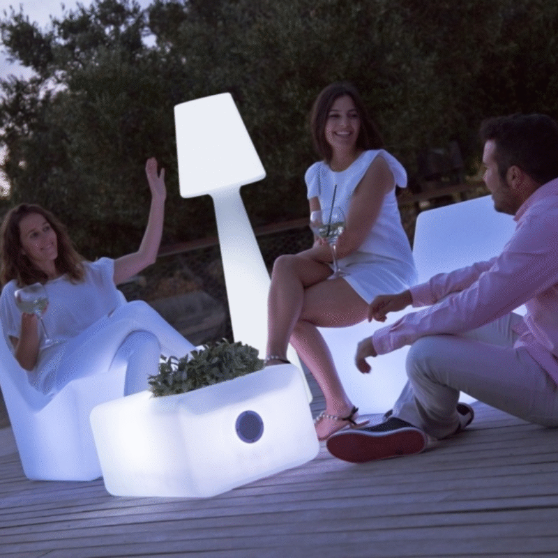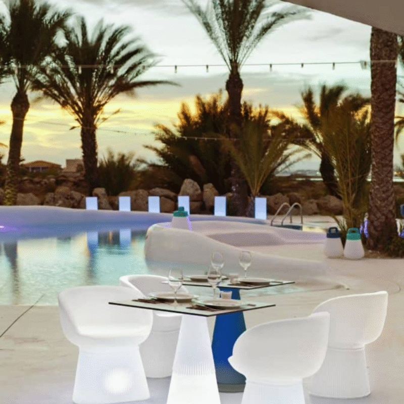 שולחן מואר לגינה לבן סולארי ונטען כולל שלט