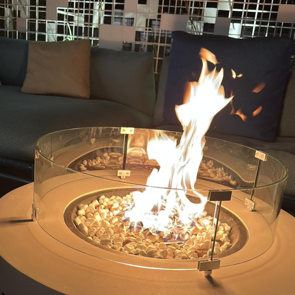 פועל על גז ומגיע עם סט אבנים ייחודי, מה שהופך את השולחן רלוונטי לכל מרפסת, גינה או פרגולה.