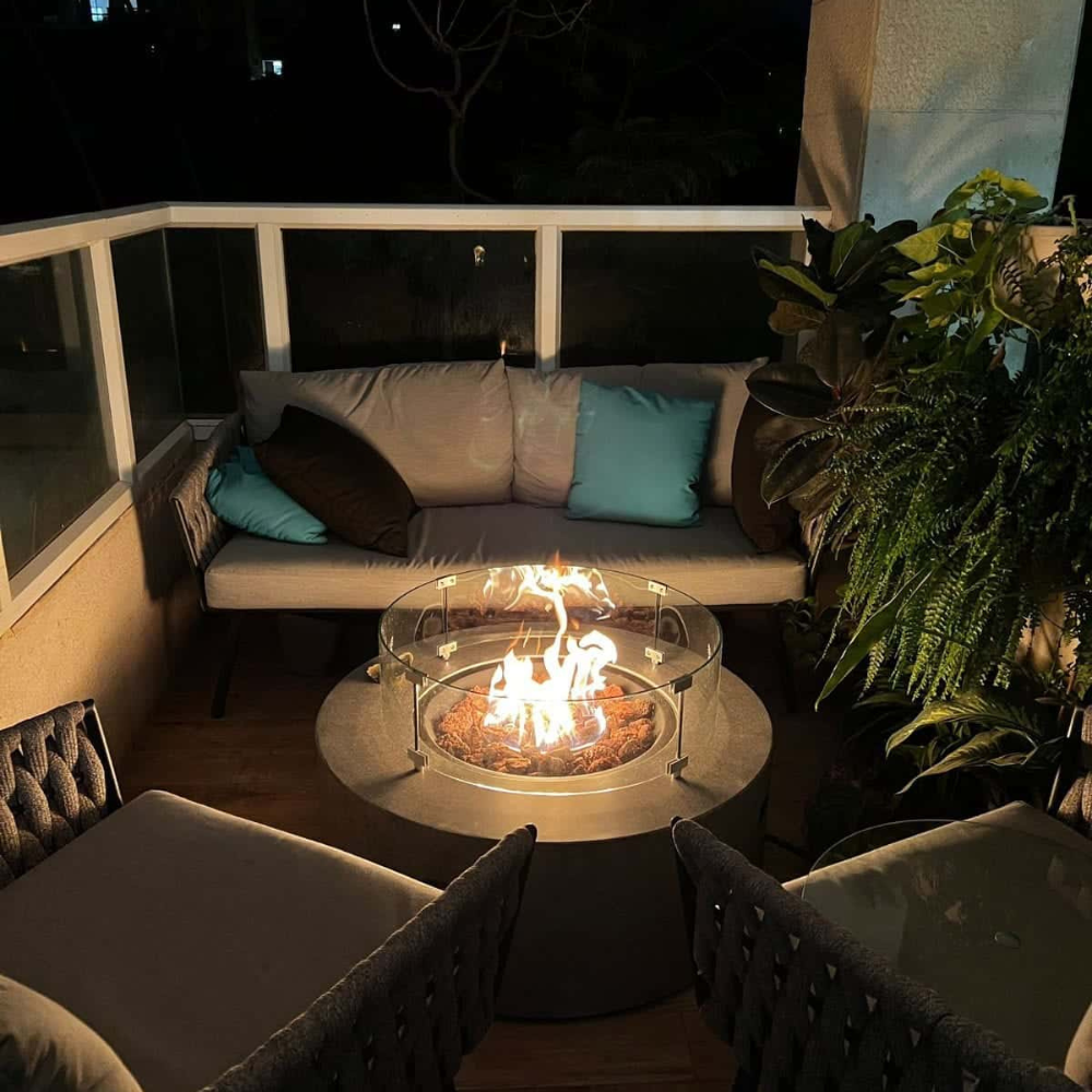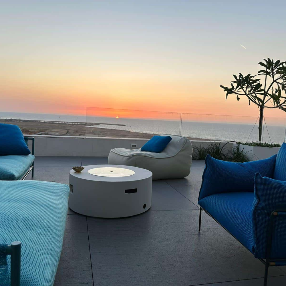 שולחן האש מוסיף מגע עיצובי ופרקטי, משלים את האווירה ומבטיח חוויית שימוש נוחה ומזמינה.